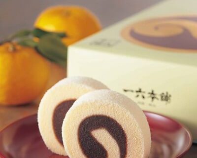 「一六タルト」は、四国特産の柚子入りのこし餡をふっくらとしたスポンジ生地で巻き上...